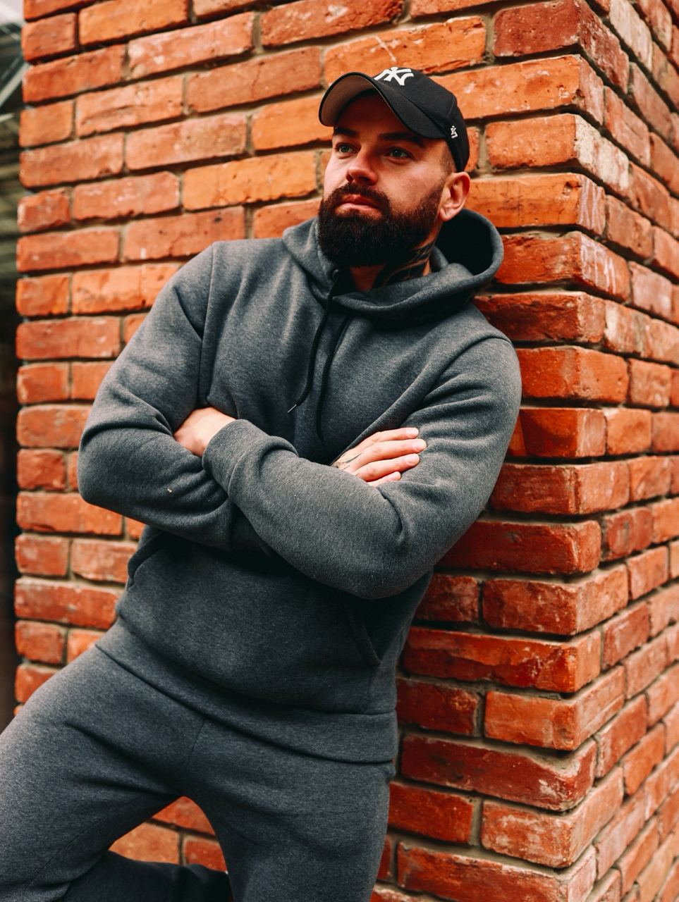 Спортивный костюм мужской теплый с капюшоном стильный флисовый костюм осень-зима однотонный молодежный