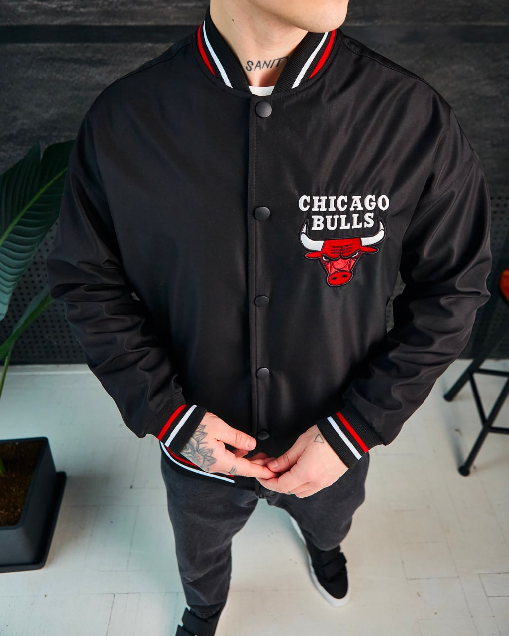 Чоловічий чорний Бомбер Чикаго-Буллз американський стильний повсякденний з нашивками молодіжний модний