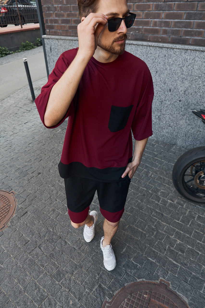 Чоловічий модний стильний комплект-двійка на хлопця спортивний костюм 2в1 чоловіча футболка шорти оверсайз бордо