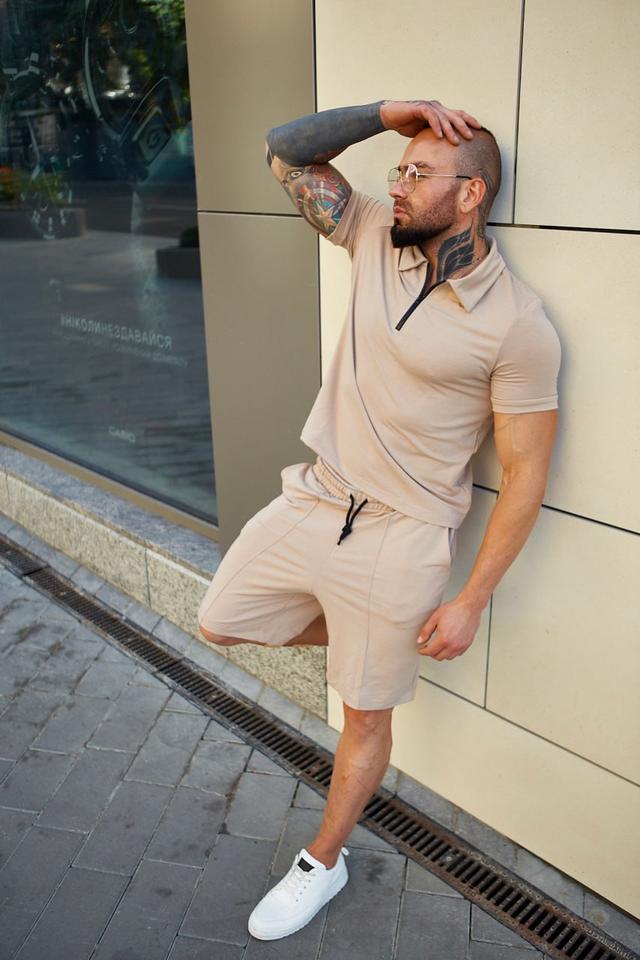 Чоловічий спортивний костюм літній легкий на хлопця комплект Бос бежевий, чоловічі літні модні комплекти