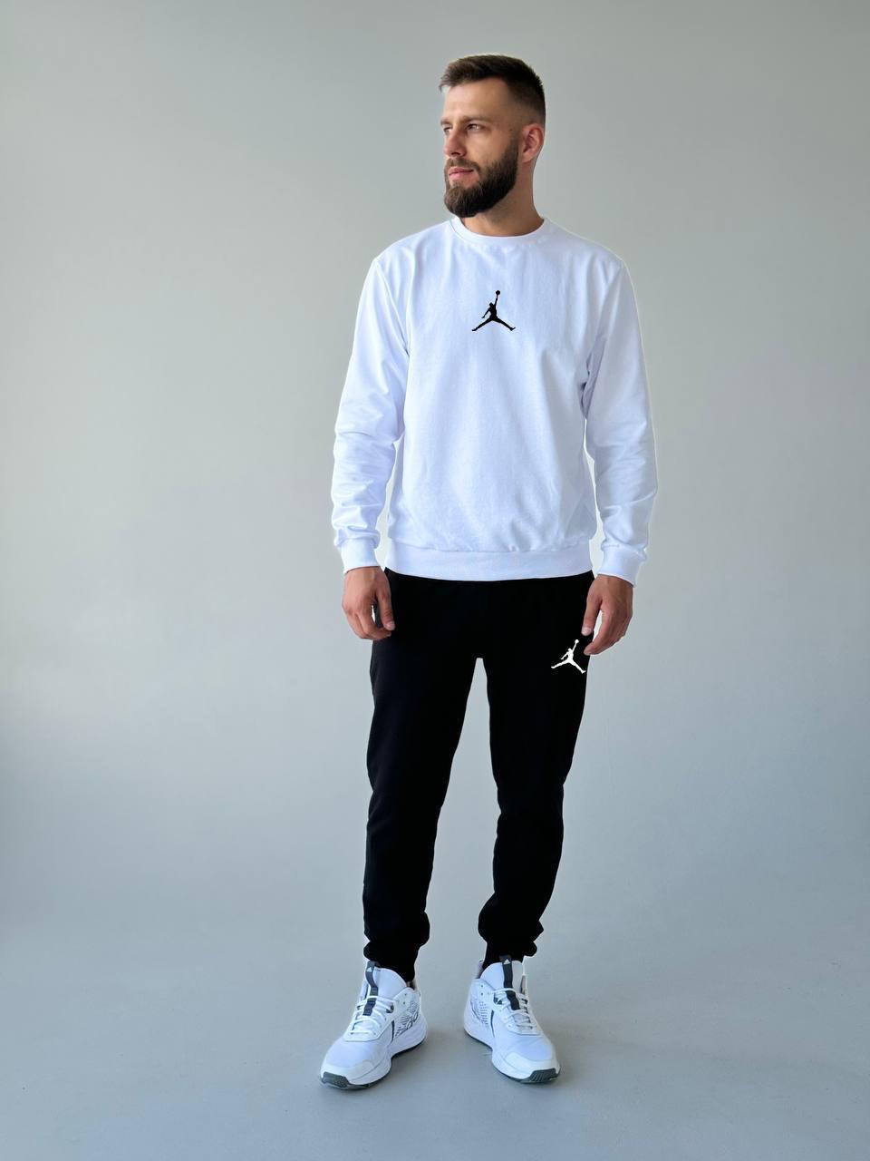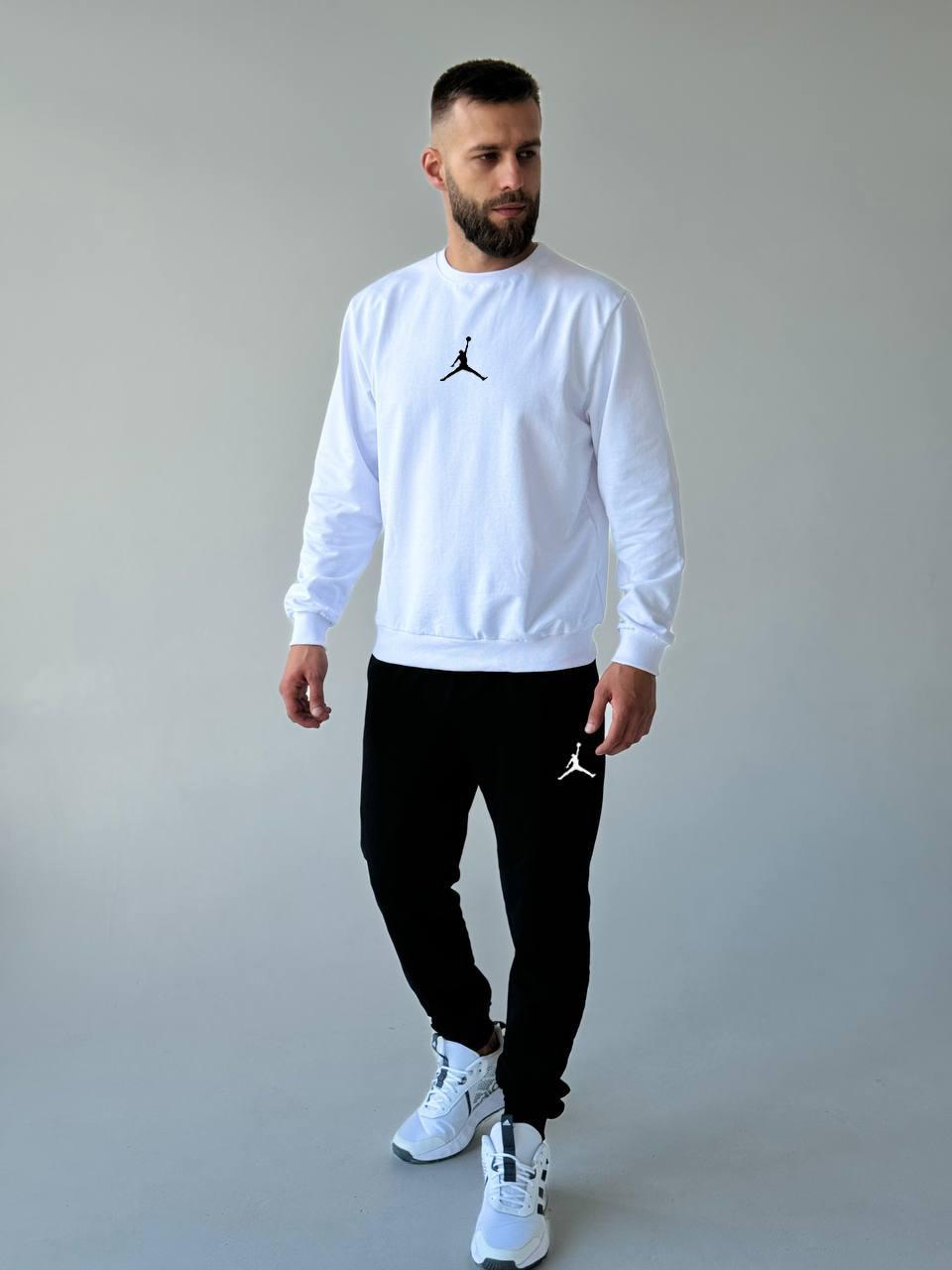 Чоловічий спортивний костюм на весну-осінь біло чорного кольору комплект світшот штани стильний молодіжний костюм