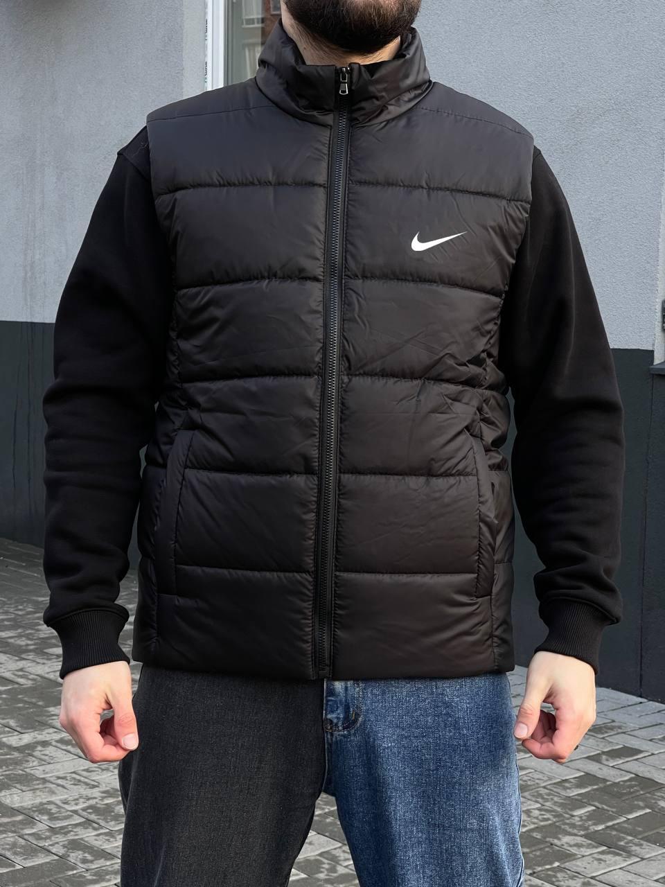 Жилетка мужская черная без капюшона на весну-осень жилет безрукавка спортивный повседневный молодежный модный